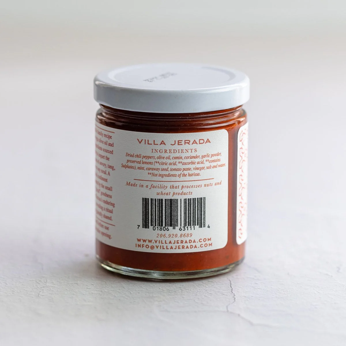 A Moroccan-style spread blended with various spices such as cumin, coriander and garlic powder, to fresh mint, tomato paste, and preserved lemons. Villa Jerada's aware winning recipe is made from the finest quality ingredients including Moroccan olive oil giving it a rustic style, unique texture, different from any other garissa on the market. This versatile condiment is slightly sweet, smoky, tangy, and just enough spicy but not too hot.